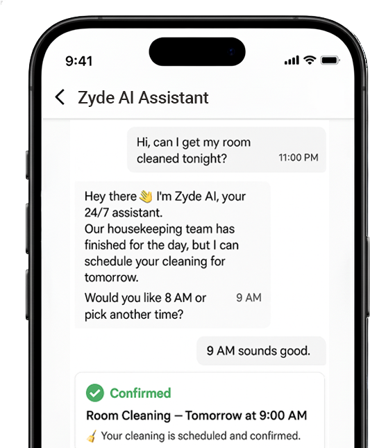 Zyde fills those gaps — no missed calls, no missed bookings, no missed guests.