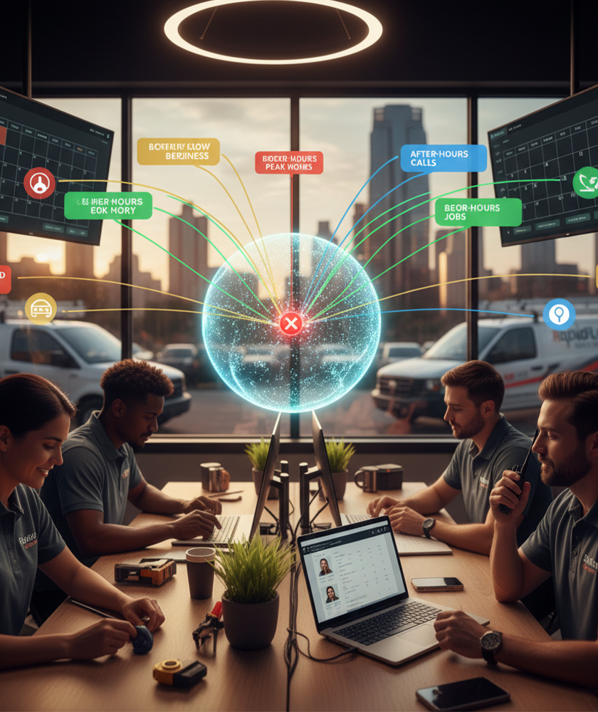 Routes calls to the correct technician or department based on service type or location. Keeps dispatch organized and minimizes confusion.
